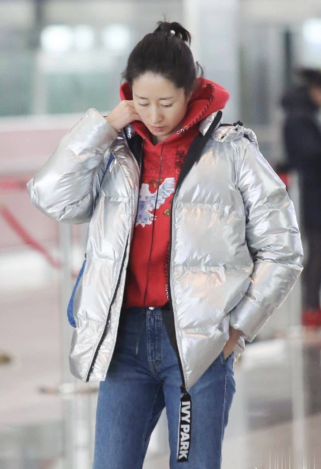 银色羽绒服几乎可以驾驭各种颜色的内搭,比如喜庆的红色。冬天穿羽绒服时,我们不妨试试选一件连帽卫衣,如果外套也有帽子的话就更好了,这样出门在外头部就有了双层保暖。